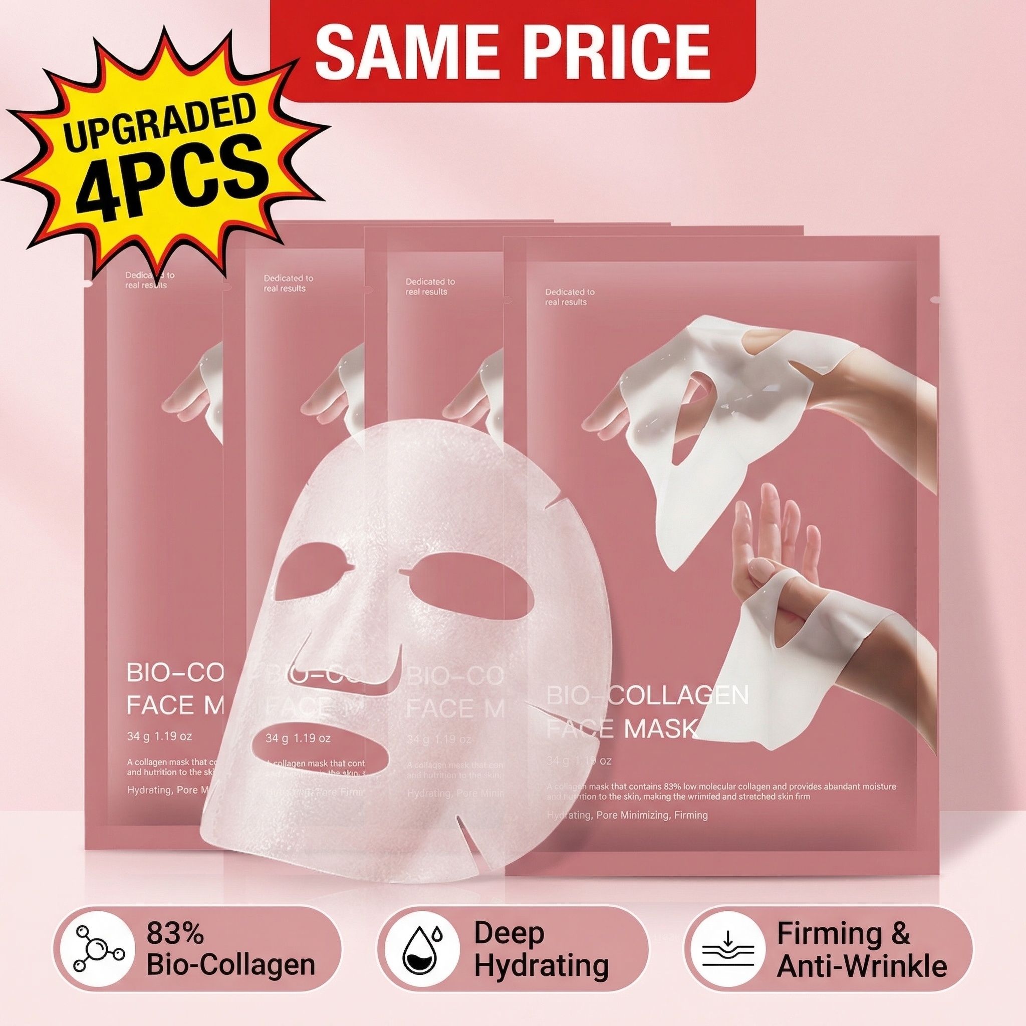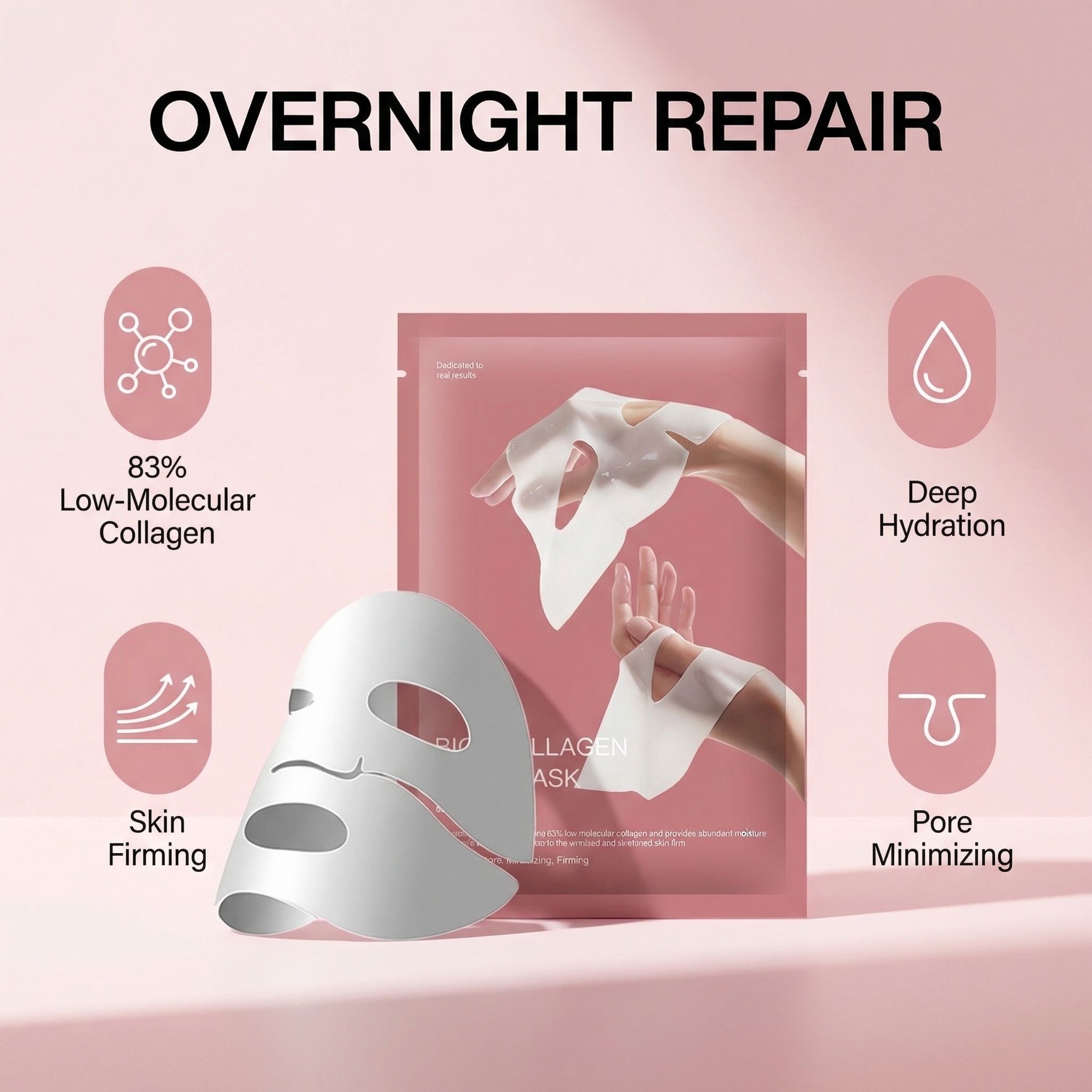 4-Pack | Korean Bio-Collagen Hydrogel Mask, Overnight Use, Lifting & Pore Minimizing, Moisturizing & Repairing Transparent Mask