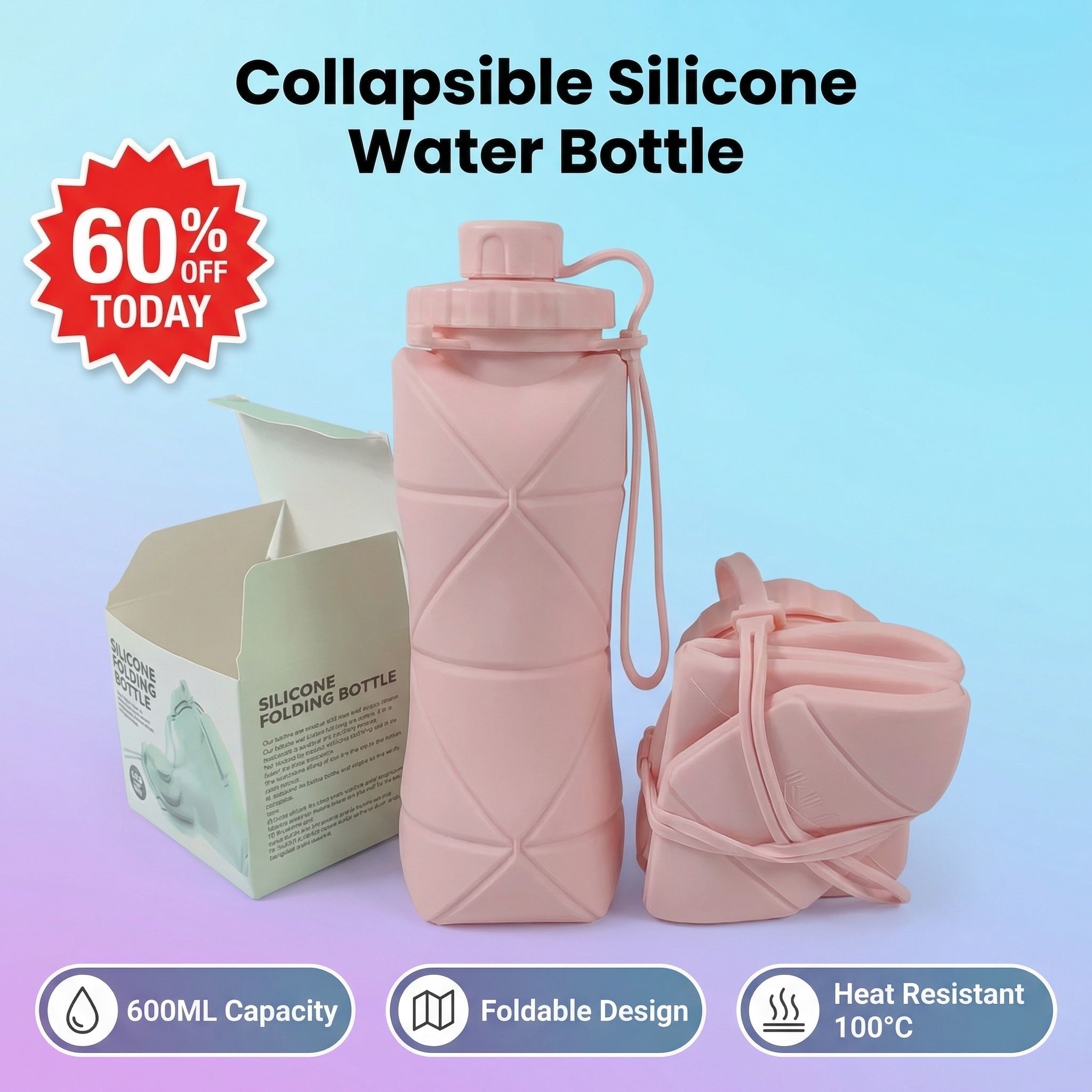 600ML Collapsible Silicone Water Bottle | Your Perfect Outdoor Buddy!