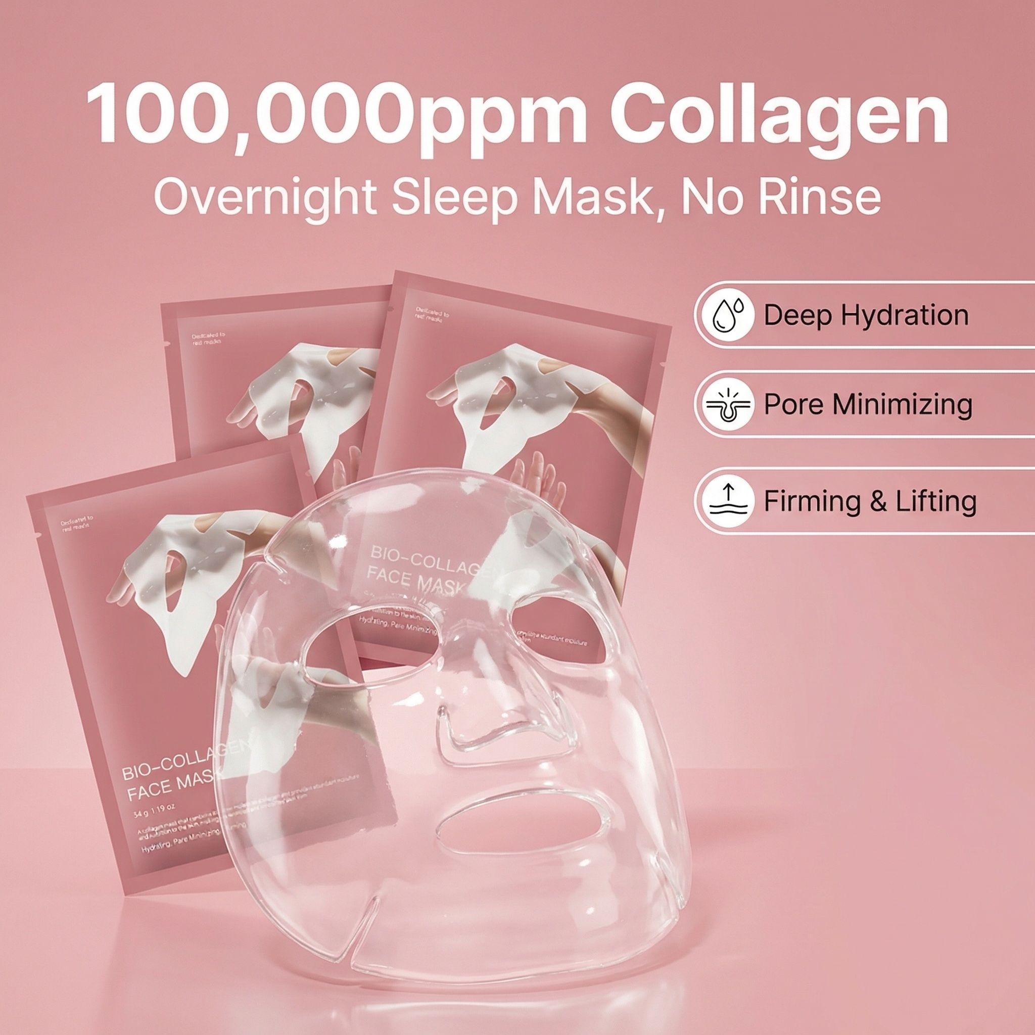 Korean Bio-Collagen Hydrogel Mask, Overnight Use, Lifting & Pore Minimizing, Moisturizing & Repairing Transparent Mask