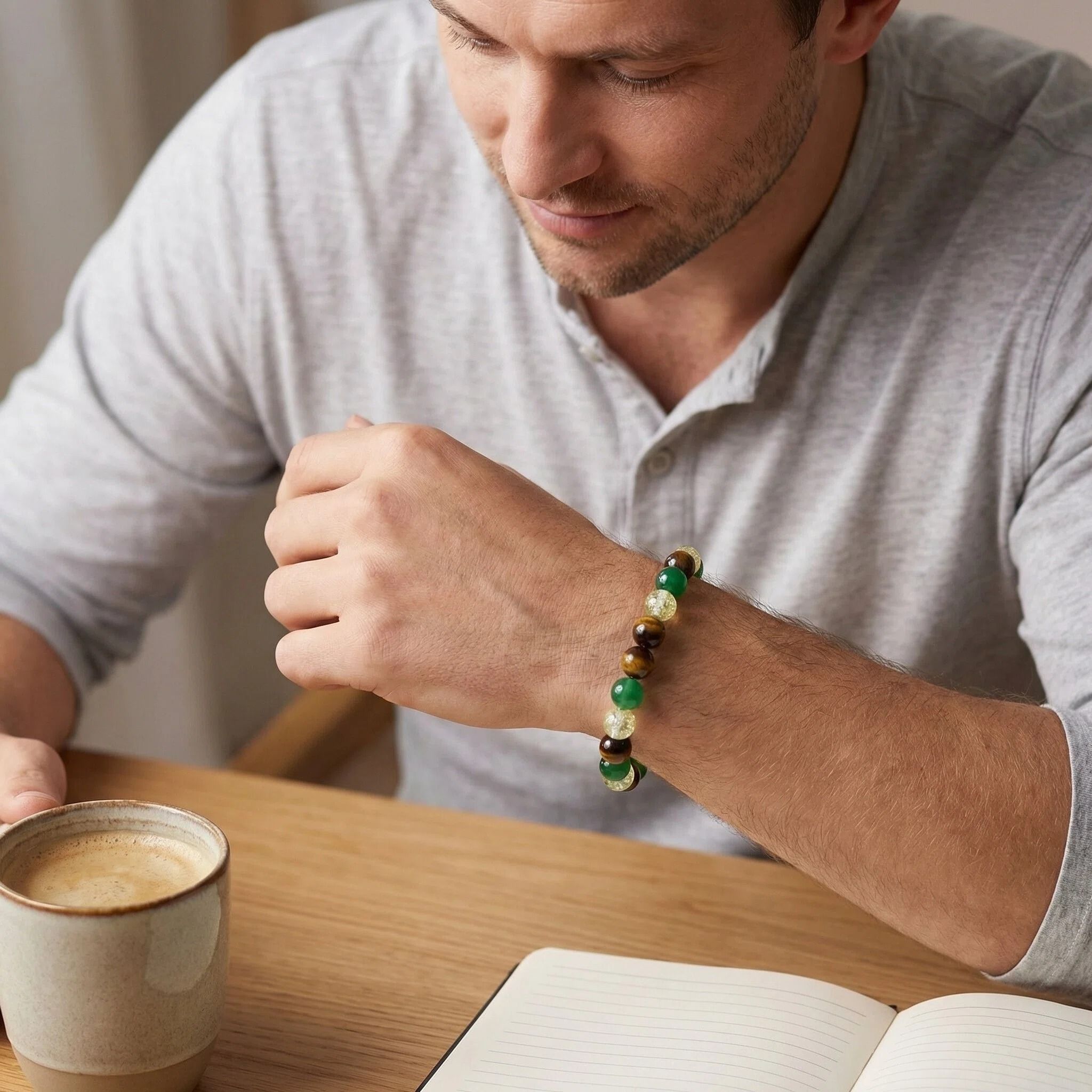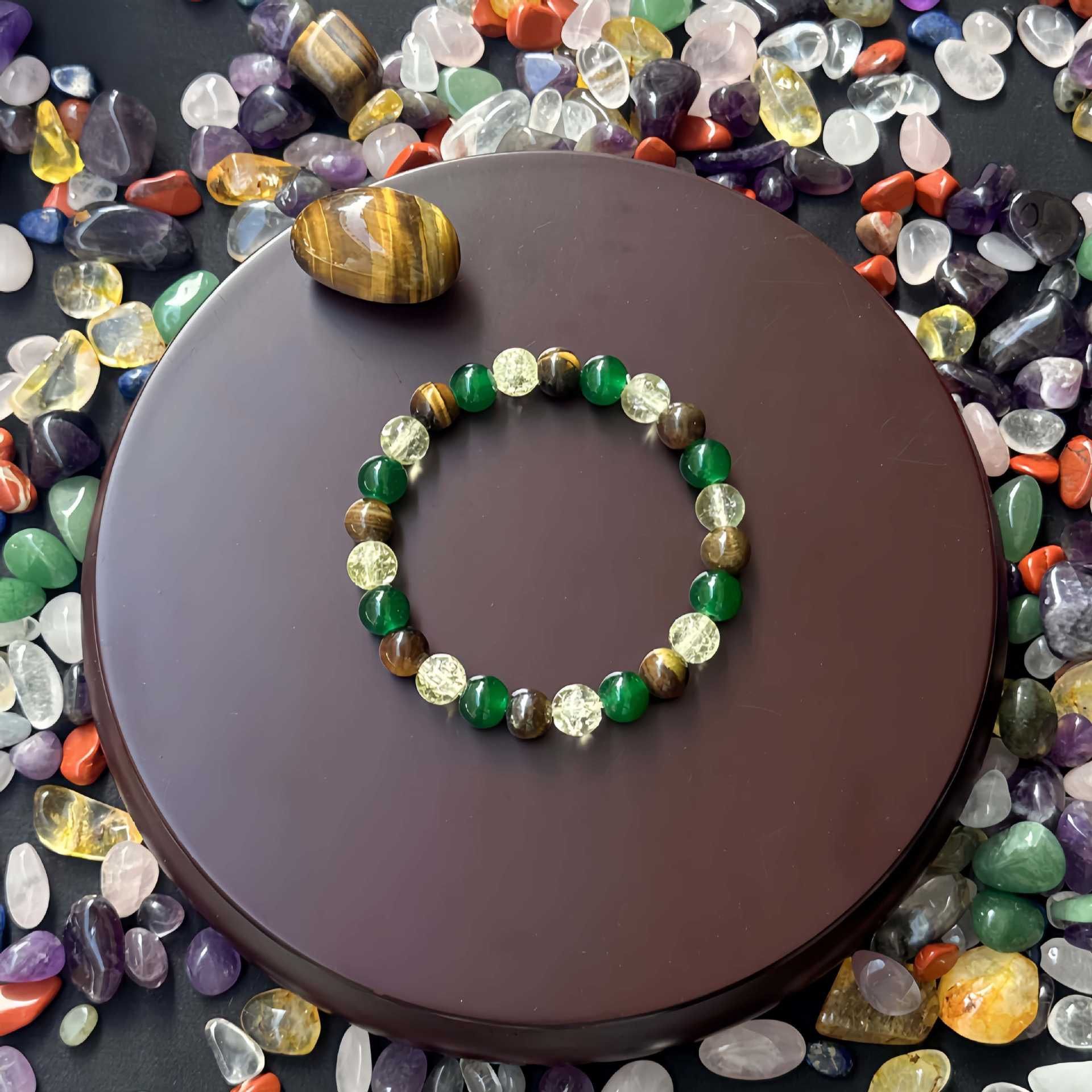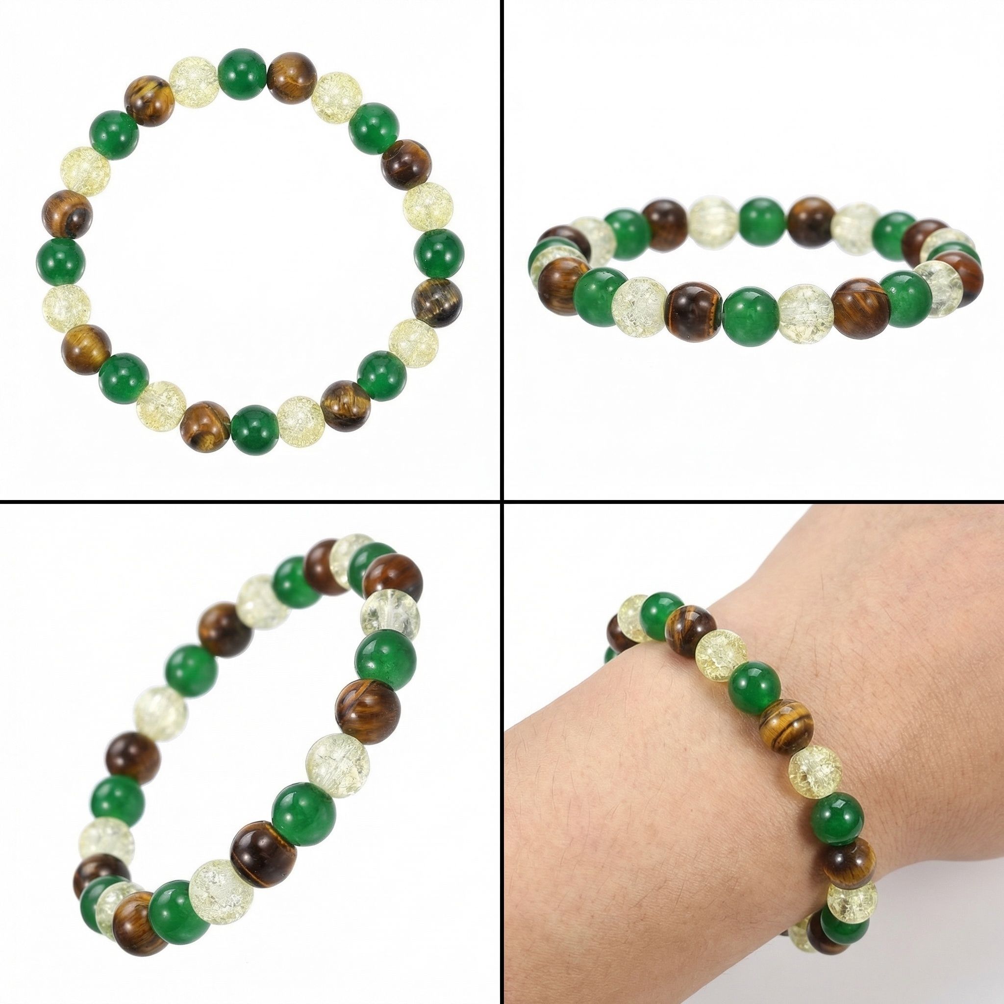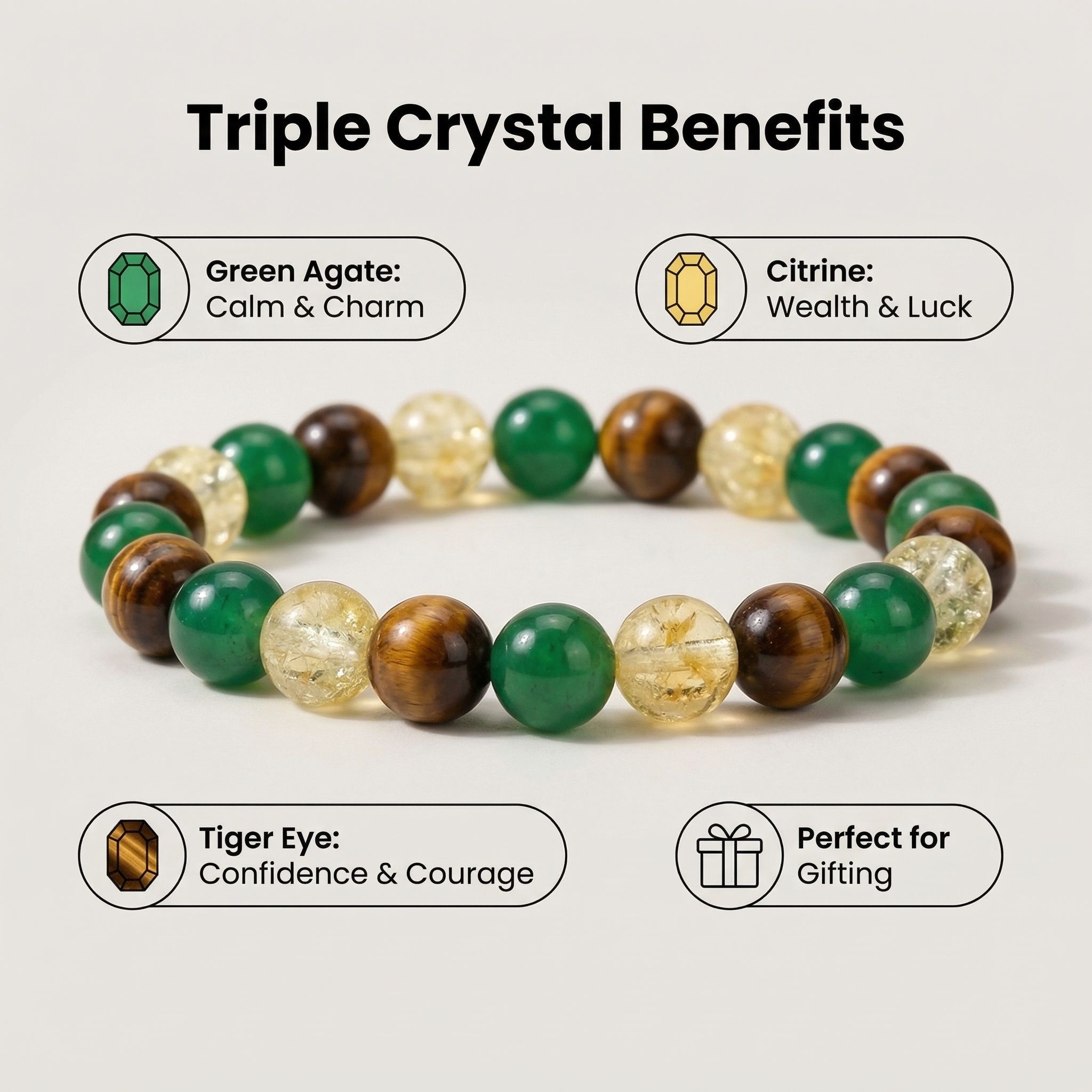 Natural Tiger Eye, Green Agate & Citrine Multi-Energy Bracelet | Attracts Wealth, Boosts Luck & Protects Safety