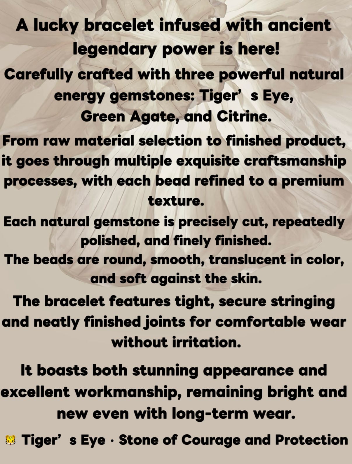 Natural Tiger Eye, Green Agate & Citrine Multi-Energy Bracelet | Attracts Wealth, Boosts Luck & Protects Safety