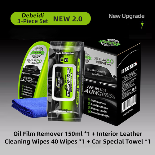 Debeidi 3-Piece Set | Oil Film Remover 150ml *1 + Interior Leather Cleaning Wipes 40 Pieces *1 + Car Special Towel *1